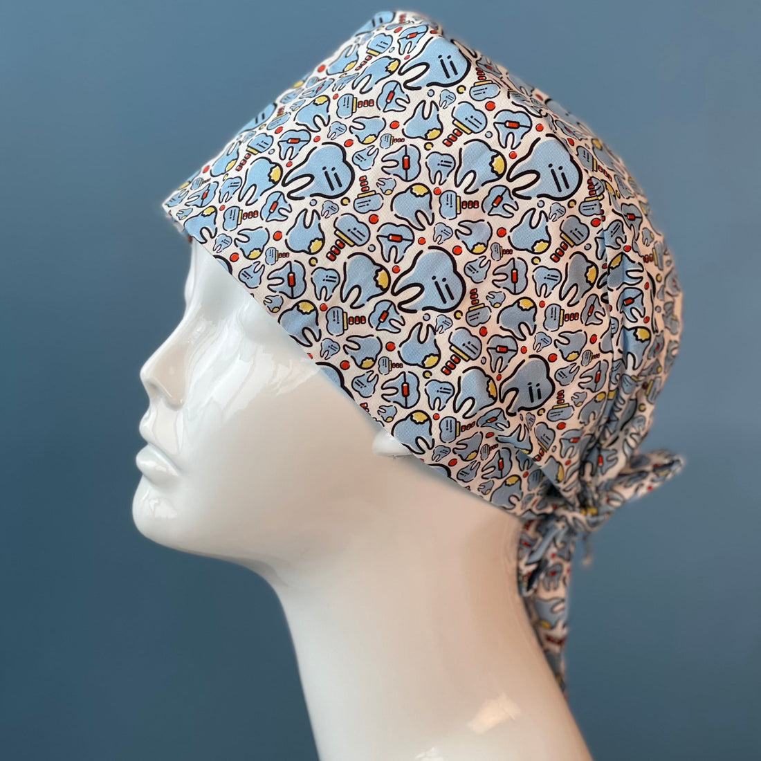 غطاء رأس طبي بطبعات أسنان Ciel blue