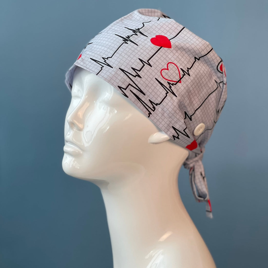غطاء رأس طبي بطباعة نبضات القلب Gray